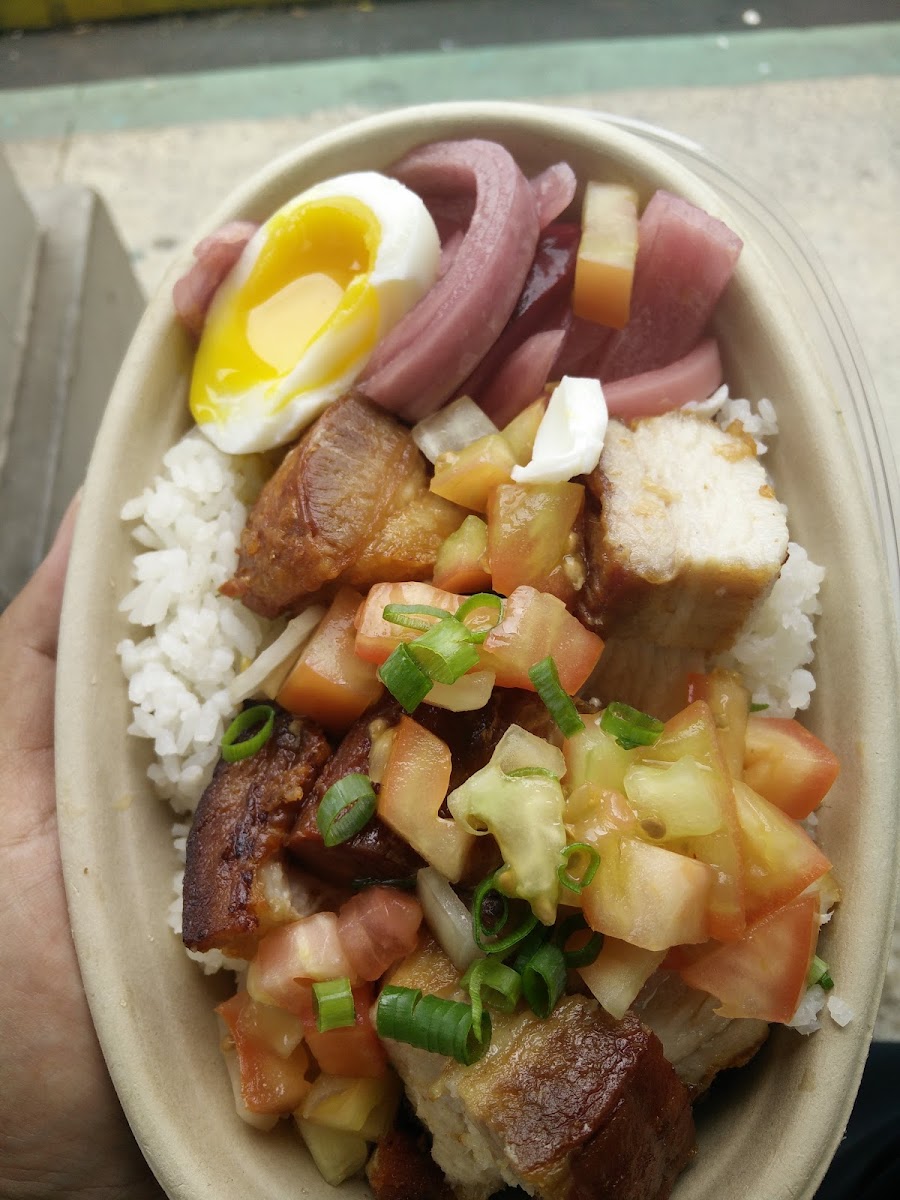 I saw all the reviews for this place so I had to try them out. I will keep this simple and to the point because there are already a ton of reviews for this place. 1. Poke - This is the best poke I have ever tried. I am from Hawaii too. I don't normally like spicy tuna poke but wow, they really nail it out of the park with this one. I like the addition of the tiny arare (mochi crunch) which gives it a little crunch. I wish I could make poke like this at home. 2. Chop Steak - This was also really good. They really go ham with the onions both green and yellow. They also have a lot of garlic in there. A classic "local dish" and they did a great job. 3. Fried Chicken Sandwich - Awful. Did not like at all. It is seriously "too big". Also it has too much sauce on it. The fried chicken had a bad after taste. When you are frying a piece of chicken this big it needs to stay in oil a long time, so it tastes sorta burnt. This not only is really bad for your health but it doesn't taste good either. I would actually prefer it to be like 1/4 of the size. This place gets 4 stars for having the best poke ever with a star removed for the worst fried chicken ever. Seriously get the poke it's so good!