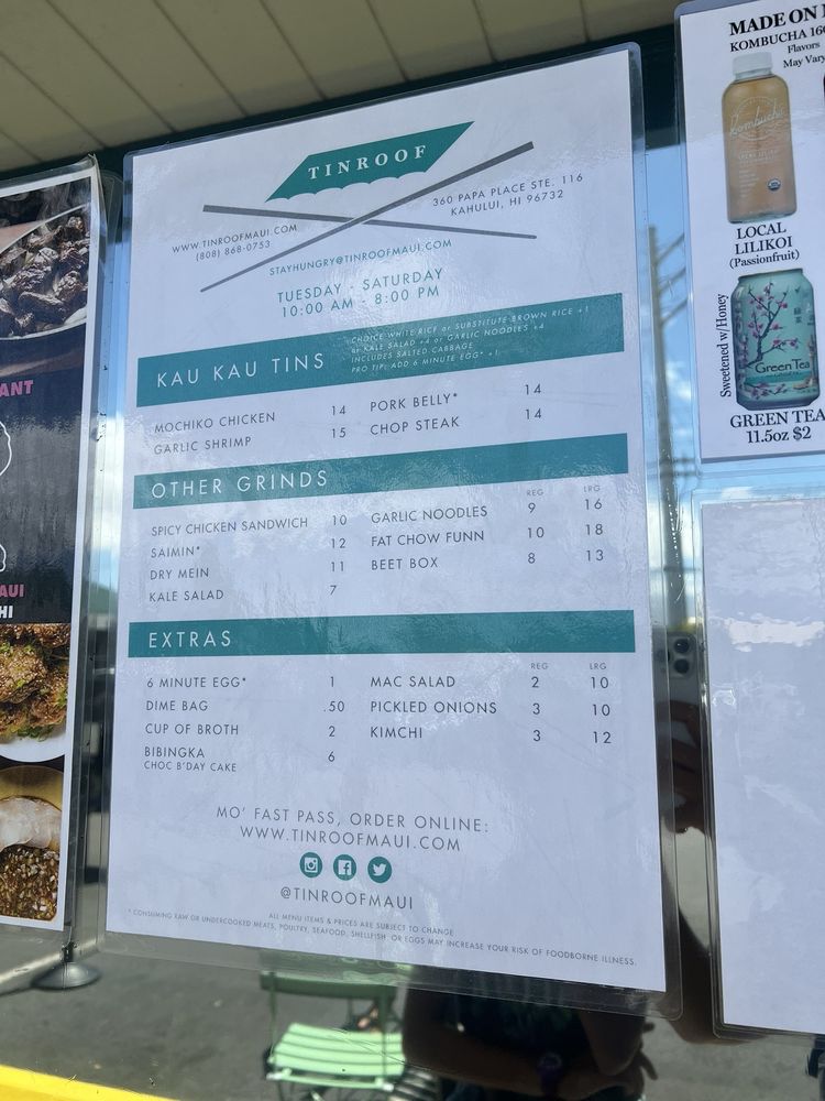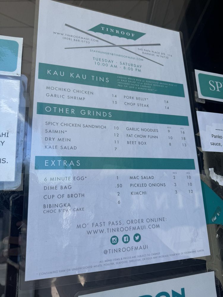 Tin Roof Maui is a Hawaiian comfort food brand offering a diverse menu with options like Mochiko Chicken, Pork Belly, and Chop Steak. The location in Kahului, HI, provides multiple utilities like delivery, takeout, and reservations, with a casual atmosphere suitable for lunch and kids. The menu features unique dishes like Garlic Shrimp and Spicy Chicken Sandwich, along with extras like Pickled Onions and Kimchi. Customers rave about the delicious flavors and generous portions, with standout items like the Mochiko Chicken and Fat Chow Funn receiving high praise. While seating is limited, the quality of the food and friendly service make it worth a visit. Overall, Tin Roof Maui is a hidden gem that offers flavorful Hawaiian comfort food in a casual setting, making it a must-try for food enthusiasts.